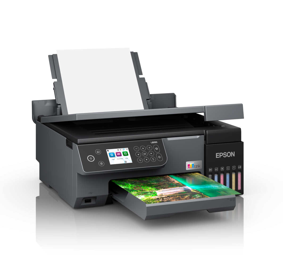 Uses six dye-based inks (including light cyan/magenta) for lab-quality A4 photos with smooth gradations and rich color coverage.